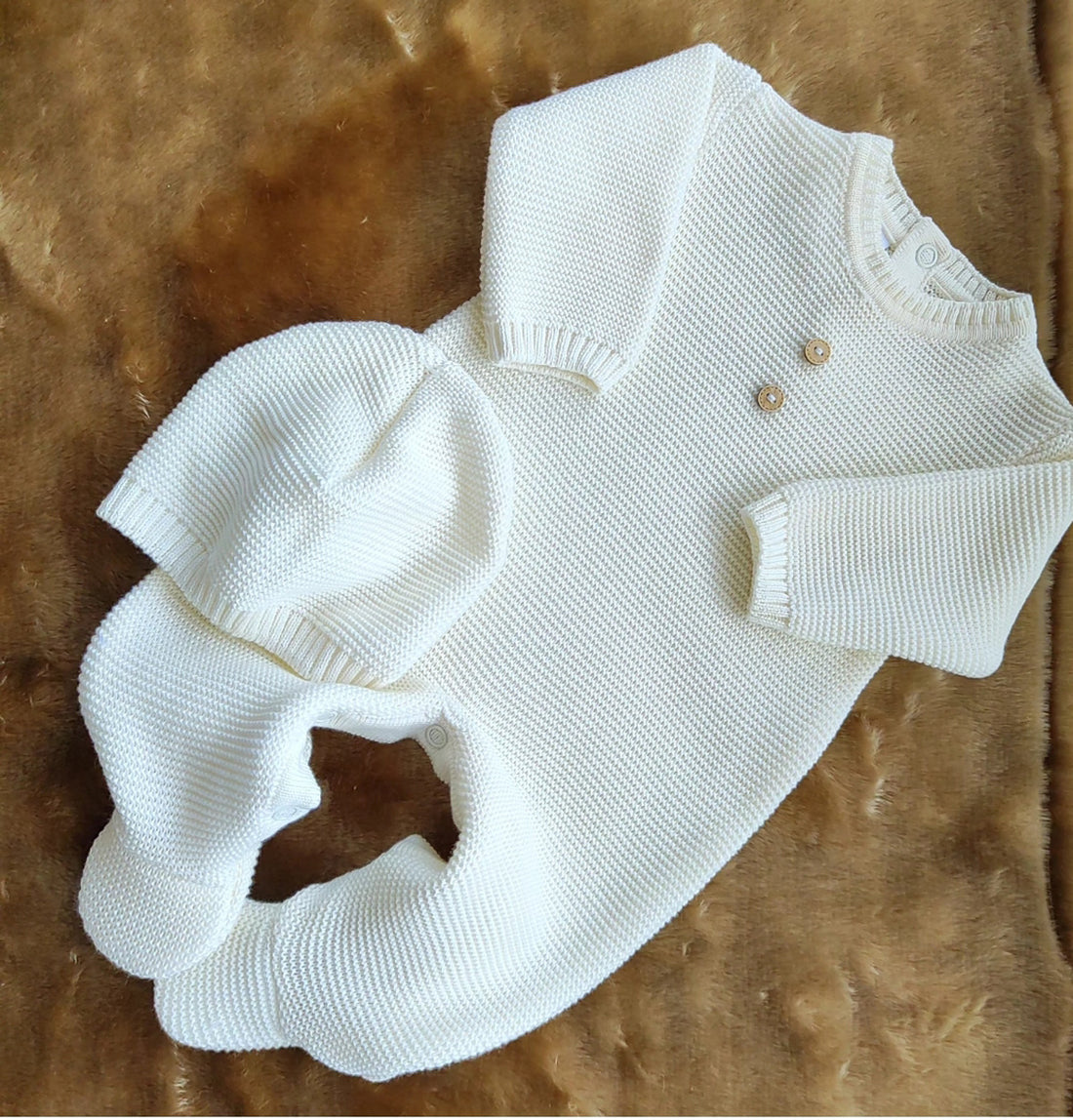 Conjunto de Pelele y Gorro en Algodón Color Marfil