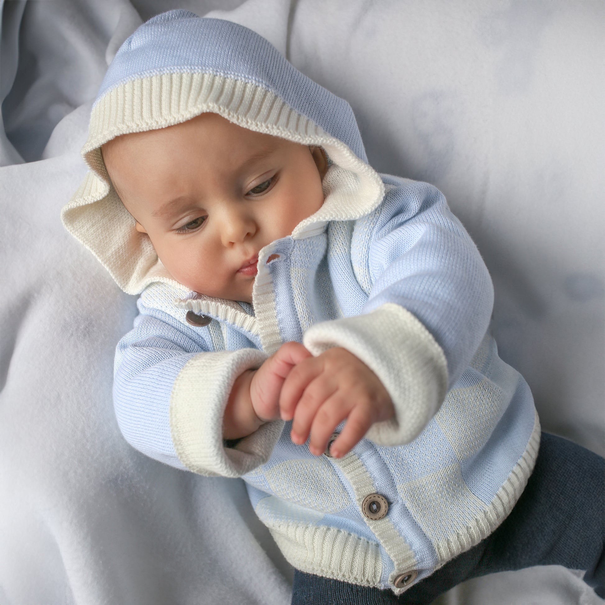 La chaqueta Jacquard presenta un encantador diseño de cuadros y está hecha de algodón de alta calidad. Su textura jacquard le añade un toque clásico y elegante, ideal para mantener a tu bebé abregado con estilo.