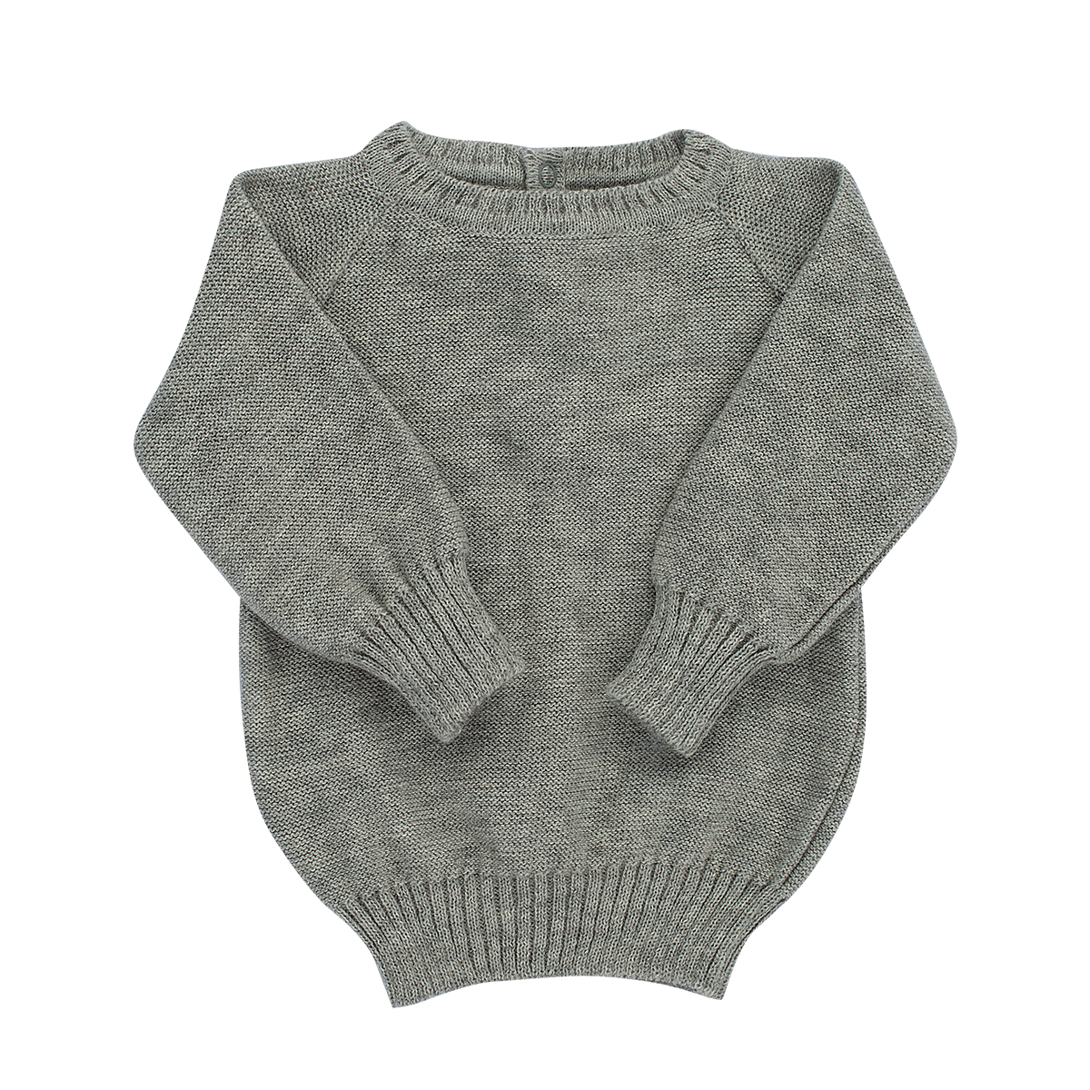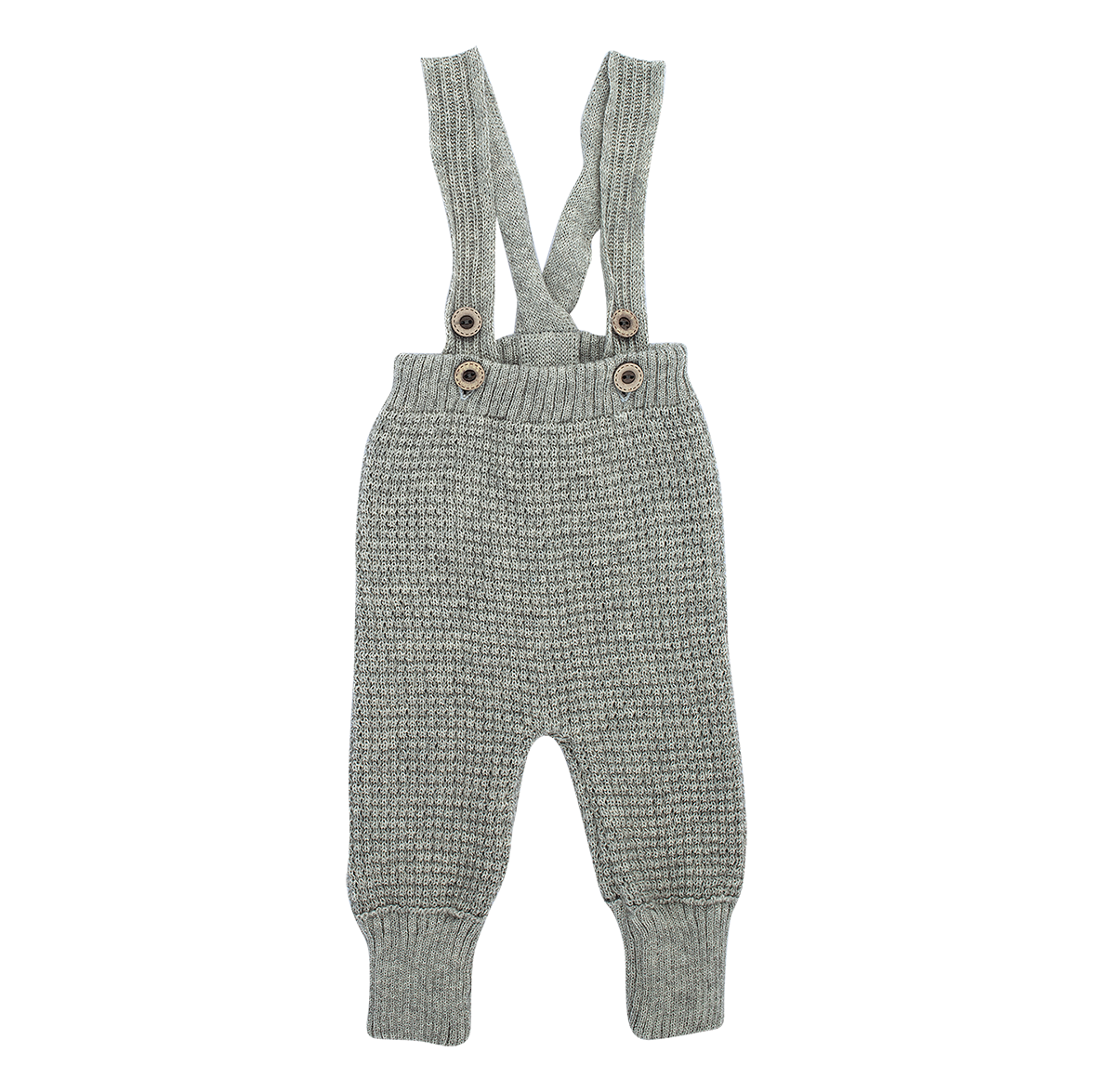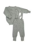 Este conjunto gris de pantalón de tirantes y buzo es perfecto para tu bebé. Moderno y práctico. Hecho de Alpaca y Algodón Orgánico.
