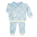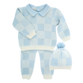 Este conjunto jacquard incluye un buzo, pantalón y gorro con un sofisticado diseño de cuadros. Confeccionado en algodón, ofrece comodidad y un estilo clásico para tu pequeño.