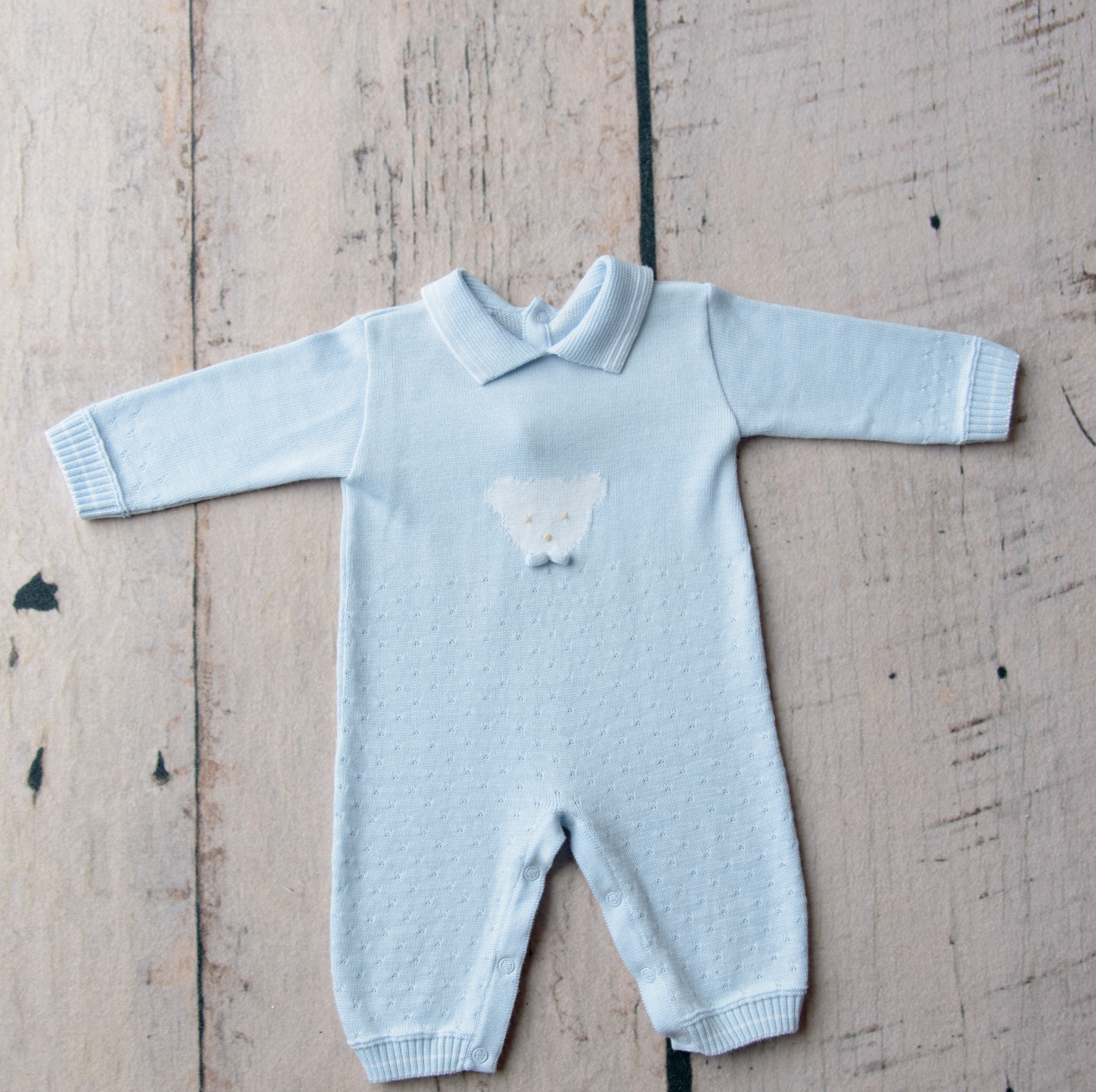 Viste a tu pequeño con este encantador mameluco de manga larga y cuello polo, confeccionado en suave algodón 100% para máxima comodidad. Con un adorable oso en intarsia en el pecho y prácticos broches en espalda y entrepierna para facilitar los cambios de pañal, combina estilo y funcionalidad. Ideal para paseos, sesiones de fotos o momentos de juego, su diseño clásico y tejido respirable lo convierten en un básico indispensable. Disponible en tallas desde recién nacido hasta 6 meses, ¡perfecto para regalar o consentir a tu bebé con un look tierno y moderno! 🧸👶