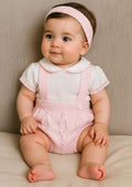 panty con tirantes y buzo clemencia tejido para bebe rosado/blanco