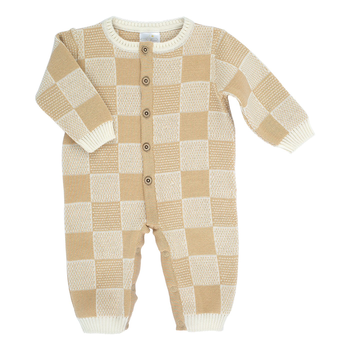 Este elegante pelele de algodón en diseño jacquard presenta un patrón de cuadros y se abre completamente por delante, facilitando el cambio de tu bebé. Ideal para combinar comodidad con un toque clásico.